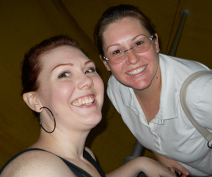Before we felt anything we could hear it. The rumble was heavy and low. At first, it sounded like a semi or garbage truck was not following the speed limit in the neighborhood. When I didn't see any trucks around, I started looking up for a low flying cargo plane. Then, I felt the ground move. One of the women I was talking with was sitting on the porch and had tipped her chair back against the wall, balancing on only 2 legs. As the shaking started, she spastically lurched forward, thinking she was loosing her balance and about to fall over. The other folks I was standing with, stumbled a bit, like when you're drunk and have trouble remaining in a stationary upright position. I bent my knees, in sort of a surfer pose to keep my balance and we all looked at each other with really perplexed expressions.